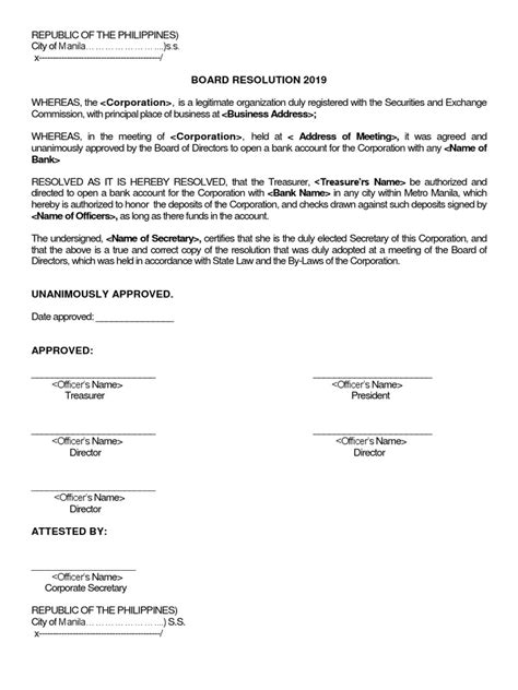 Download Sample Board Resolution To Open Bank Account Philippines Reader