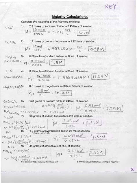 Read Online Molarity Calculations Answer Key And Work Reader